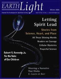 EarthLight Issue 51 -- Autumn 2004 Issue 47 - Fall 2002/Winter 2003 Issue 46 - Summer 2002 -- The Shamanic Response Issue 45 - Spring 2002 -- Energy For Life Issue 44 - Winter 2002 -- Youth Rising Issue 43 - Fall 2001 -- We Are One Issue 42 - Summer 2001 -- The Many Faces of Activism Issue 41 - Spring 2001 -- Making Peace With Time Issue 40 - Winter 2001 -- Critical Habitat Issue 39 - Fall 2000: Issue 38 - Summer 2000: Issue 37 - Spring 2000: The Healing Century Issue 36 - Winter 2000: Issue 35 - Fall 1999: Issue 33 - Spring 1999: Thank you for visiting the EarthLight Magazine web site.